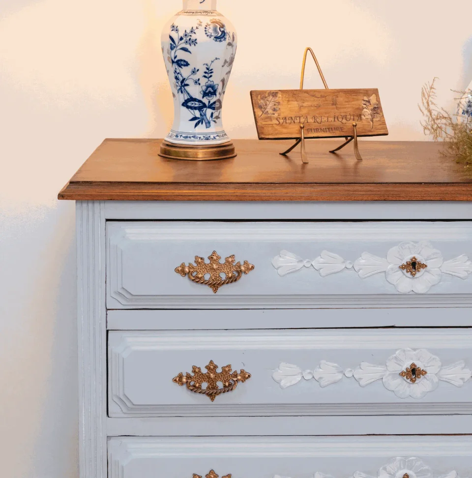 A Cômoda Encanto Azul é uma peça exclusiva da Santa Relíquia, restaurada para transmitir serenidade, elegância e um toque clássico que transforma qualquer ambiente.